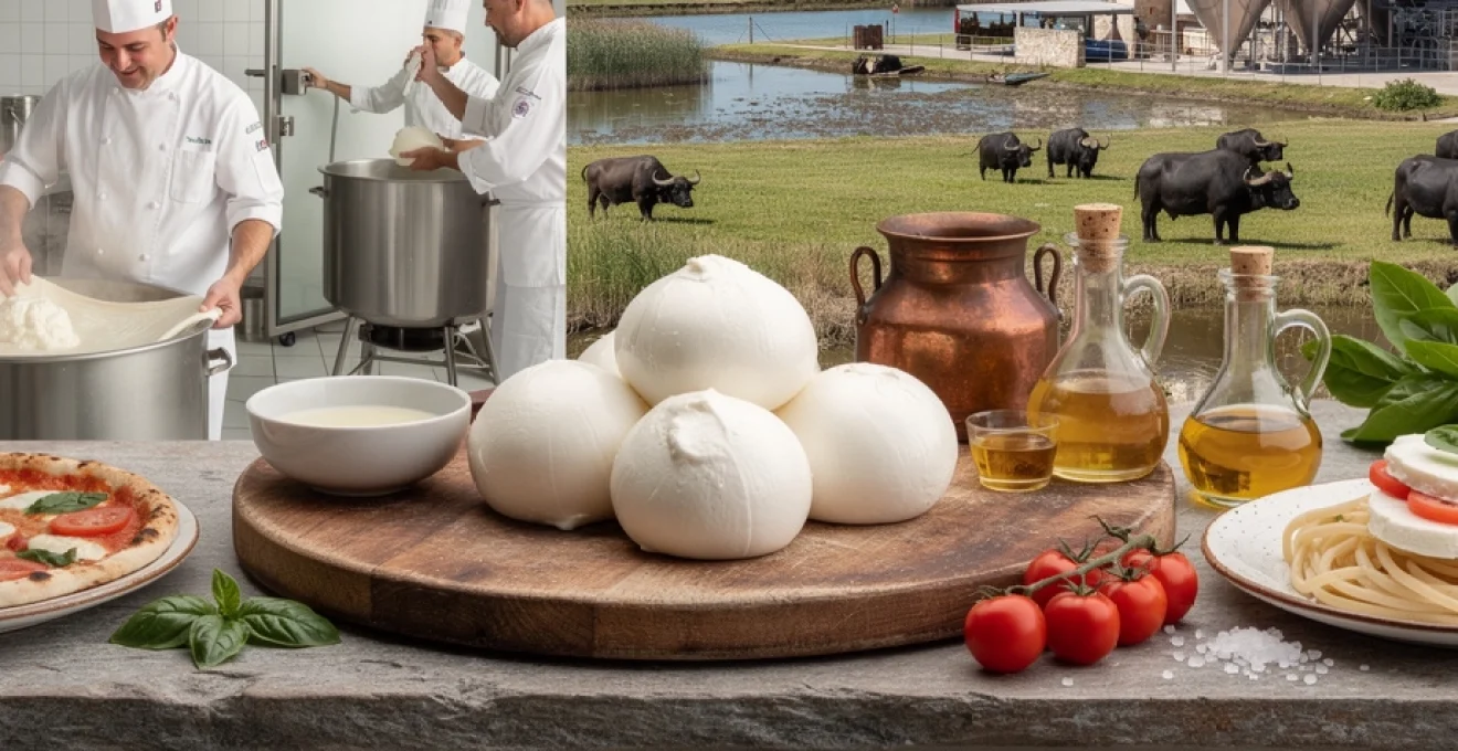 Dans les plaines verdoyantes de Campanie, où les buffles d’eau paissent tranquillement sous le soleil méditerranéen, naît l’un des fromages les plus prisés au monde : la mozzarella di bufala. Ce joyau gastronomique, symbole de l’excellence italienne, incarne parfaitement le mariage entre tradition millénaire et savoir-faire artisanal. Reconnaissable à sa texture fondante et à son goût délicat légèrement acidulé, cette spécialité laitière transcende les frontières pour séduire les palais du monde entier. Protégée par l’appellation DOP (Denominazione di Origine Protetta), elle représente aujourd’hui un marché de plus de 600 millions d’euros annuels, rivalisant avec les plus grandes appellations françaises comme le Champagne.